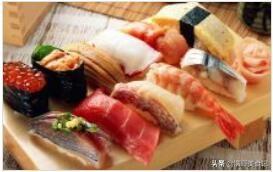 3.寿司,寿司是我们每位去日本必吃的美食,算是日本本地的一道特色美食,将小米饭团上铺上金枪鱼、三文鱼薄片,在淋上芥末。米饭包裹各类海鲜、果菜等配料,吃起来滋味醇香。