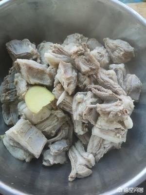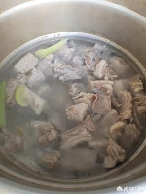 大锅烧水,开水放羊肉焯半熟,飞沫后下葱姜。