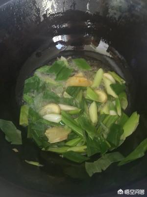 宽油放菱形葱段姜片,葱至少两棵。炒出香味。